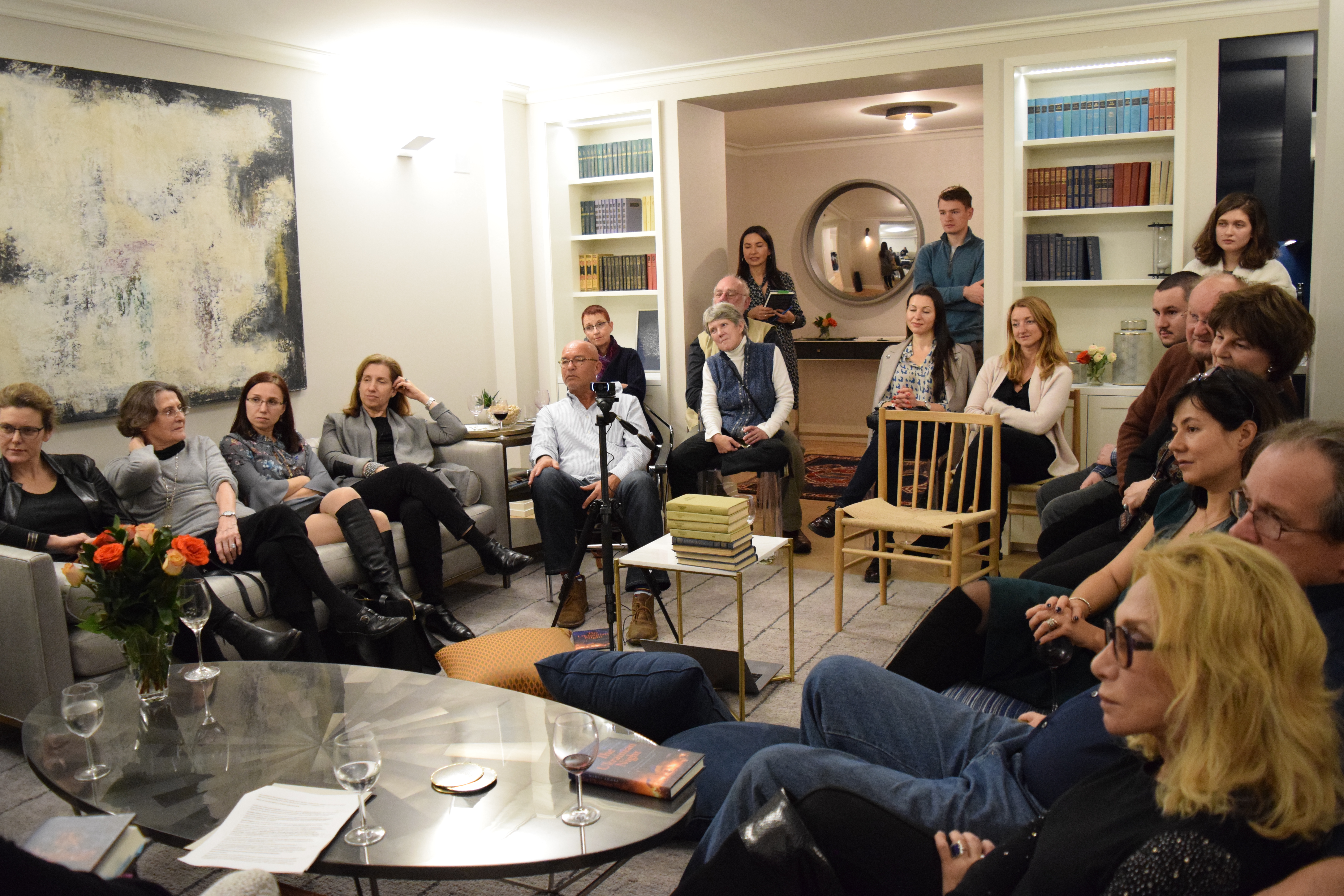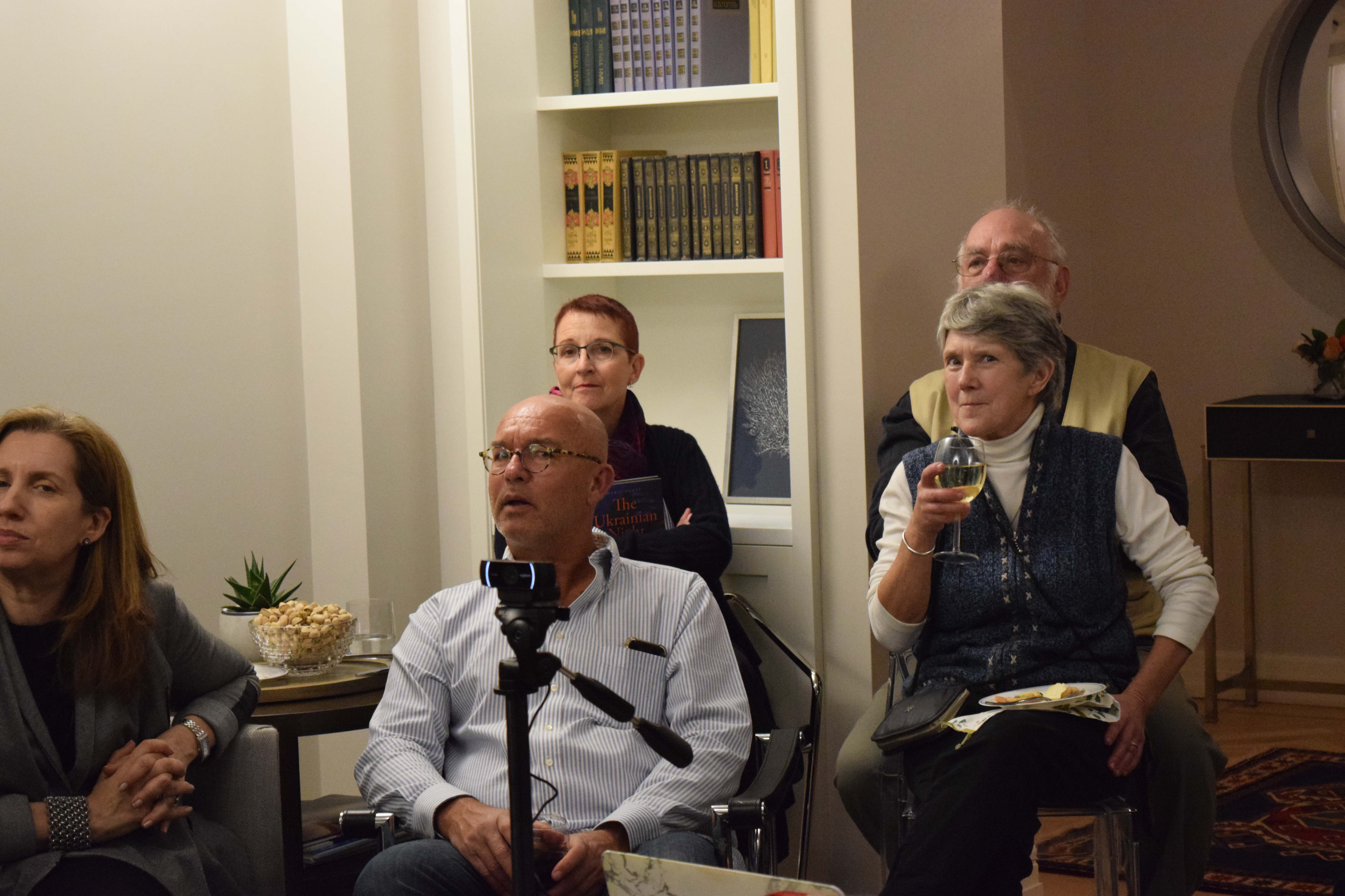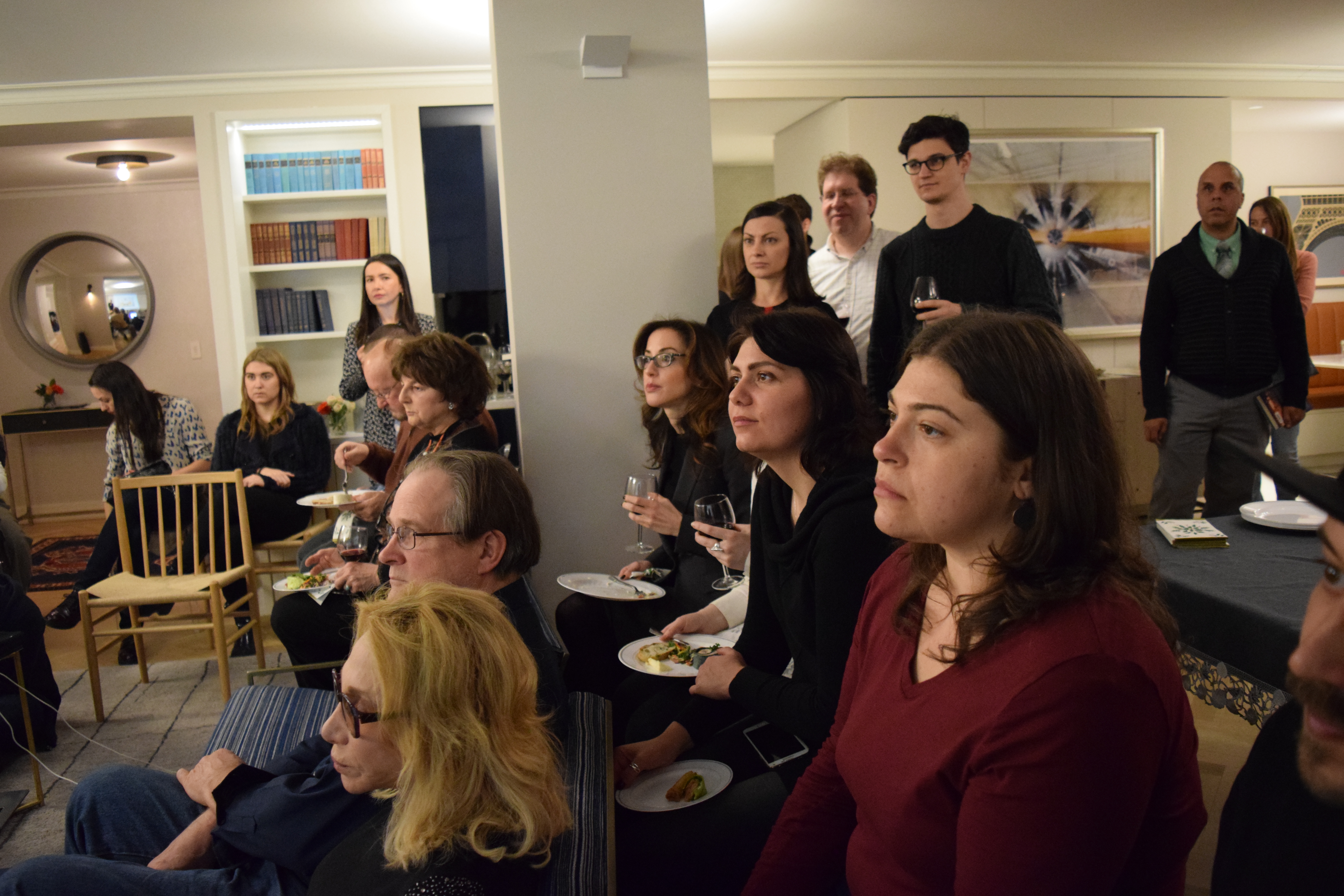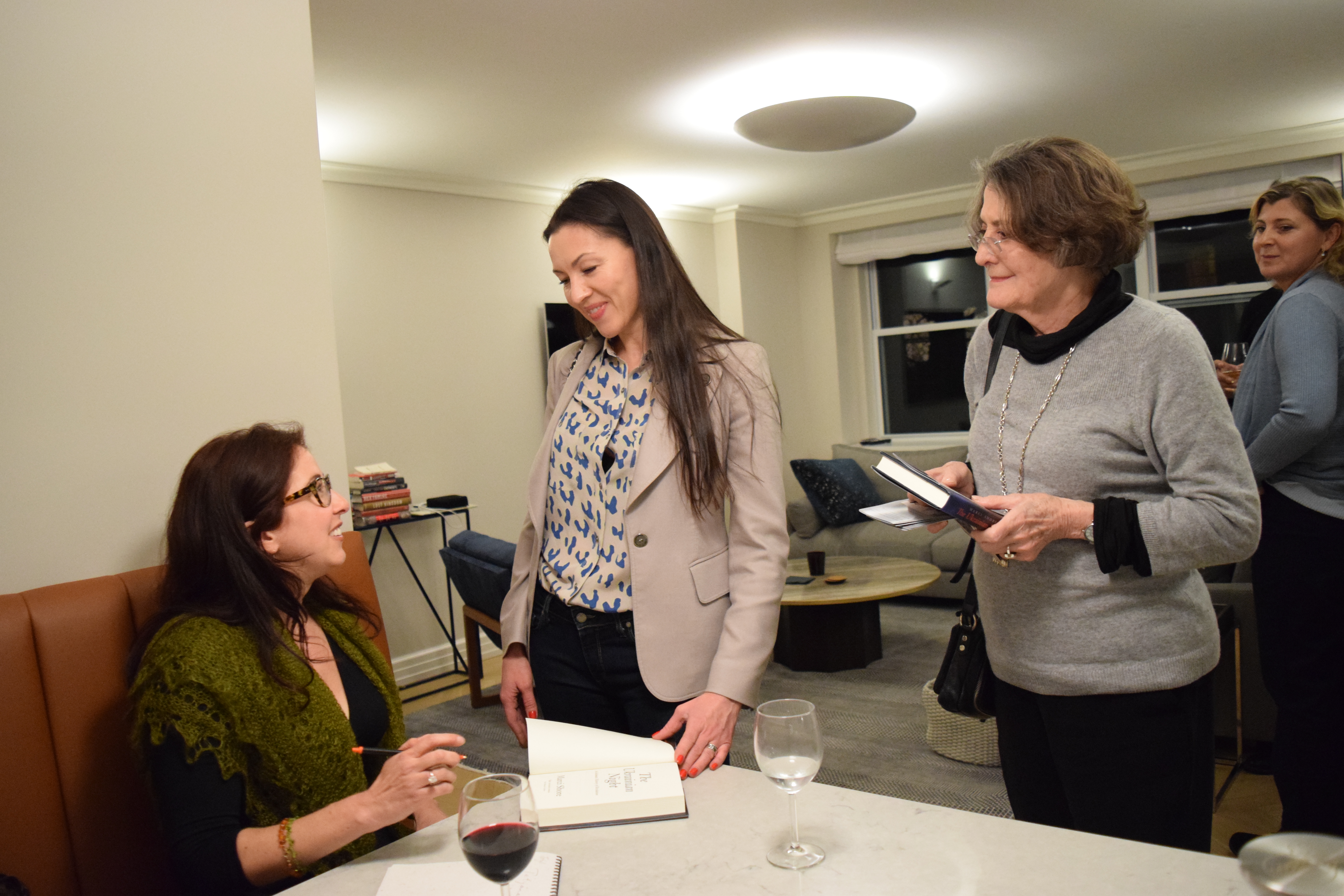 Friends and patrons of Razom gathered in a private residence on the Upper East Side in Manhattan, where they mingled over drinks and delicious food before settling down for a discussion between Dr. Shore and Olena Lennon, Adjunct Professor of History at University of New Haven.