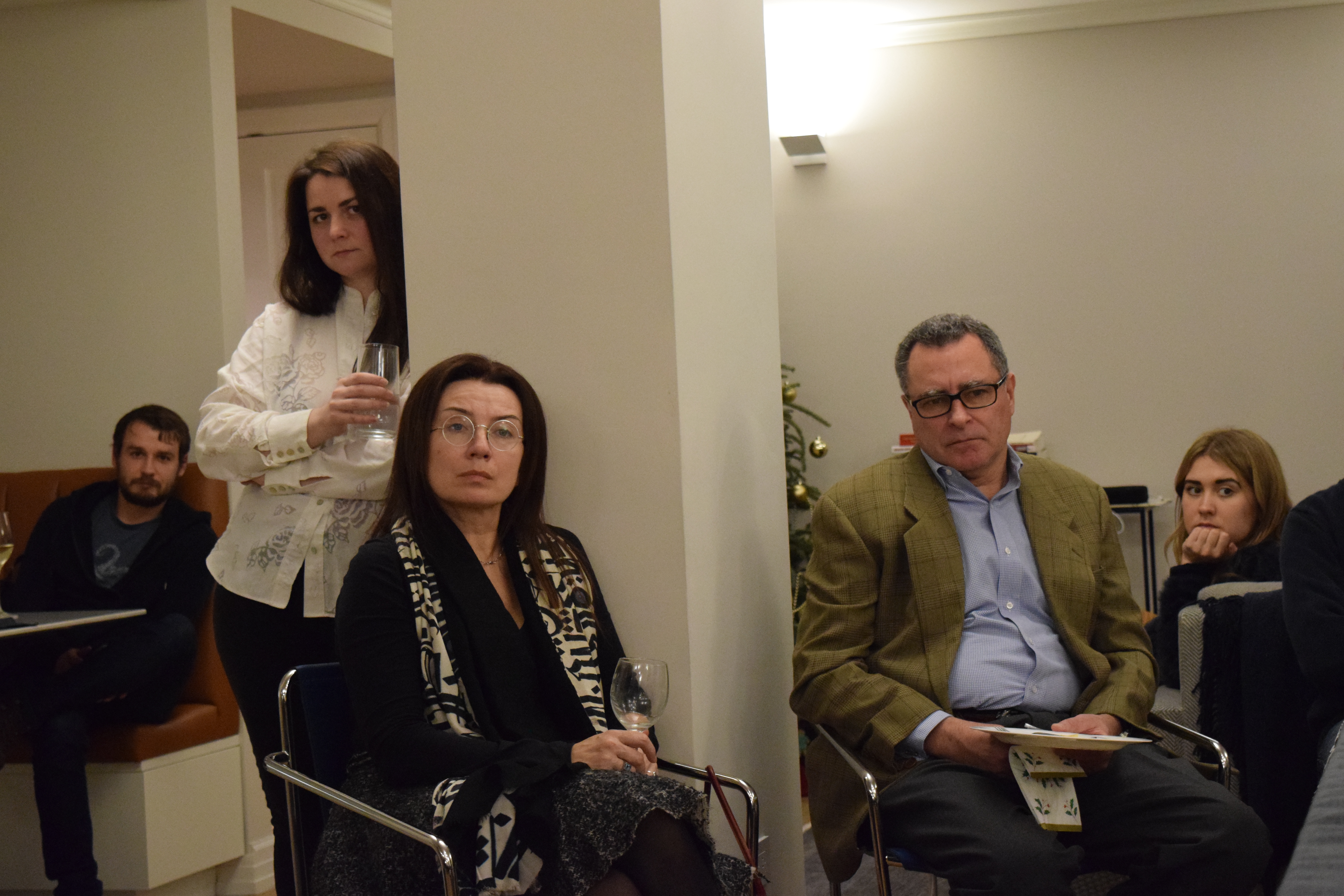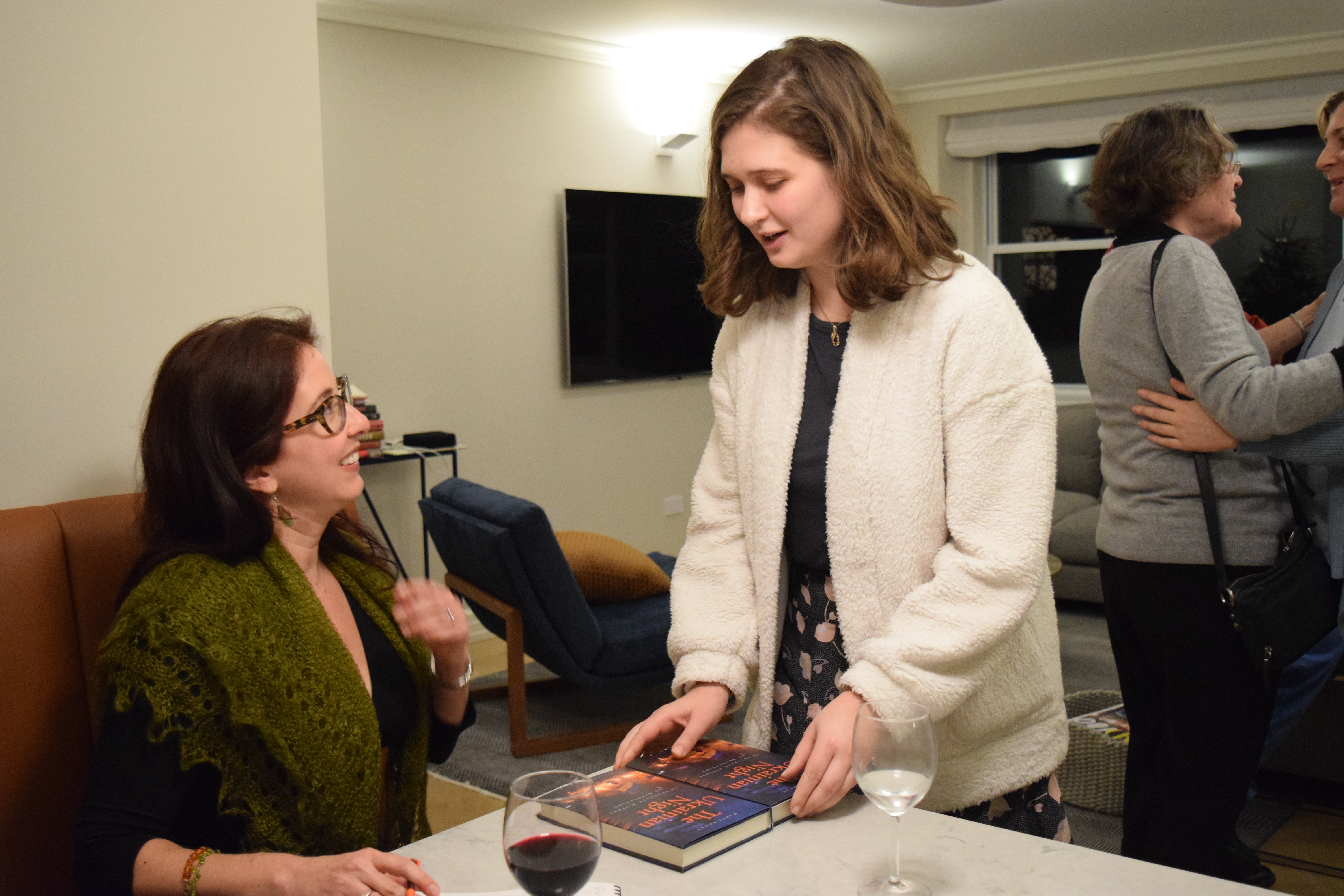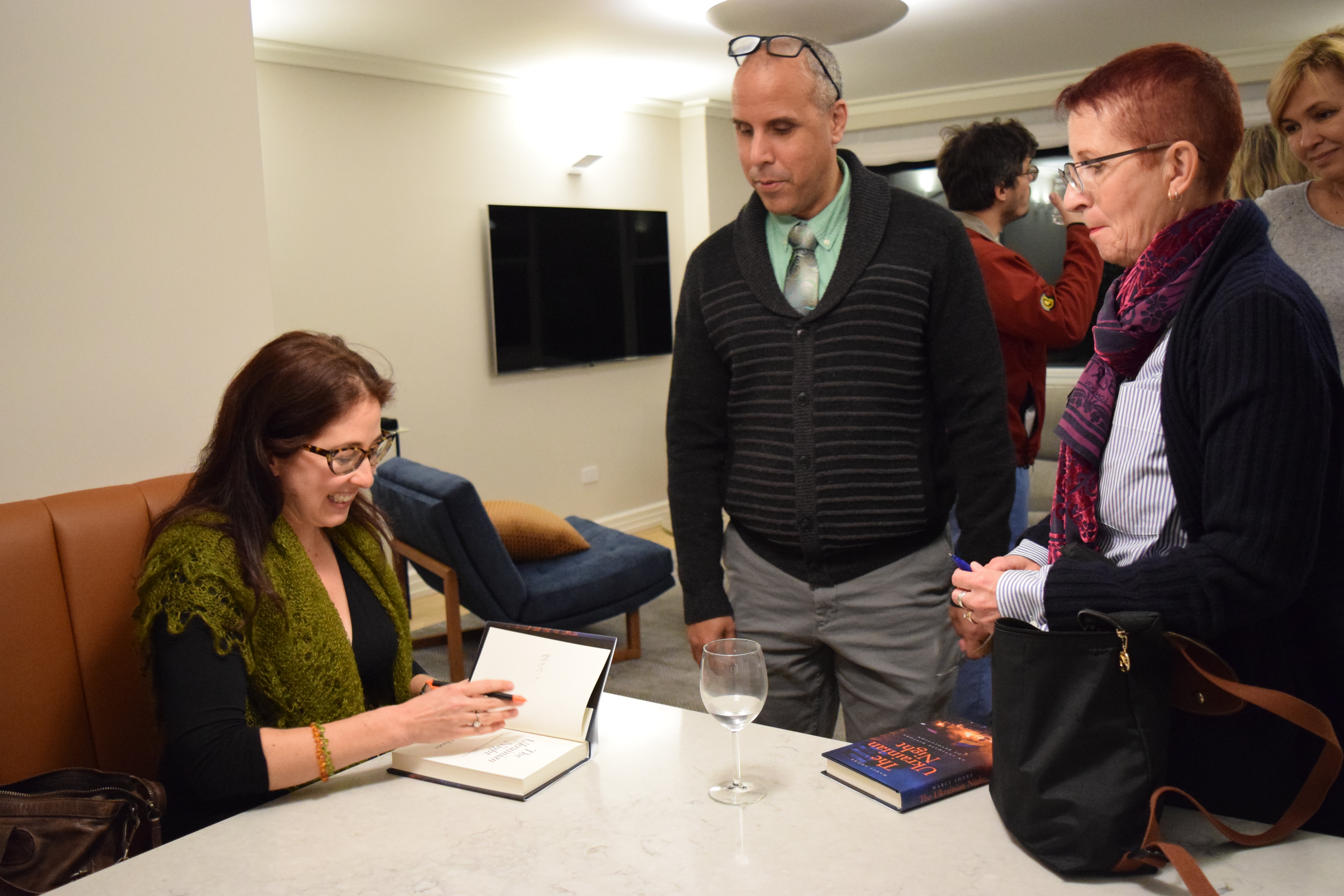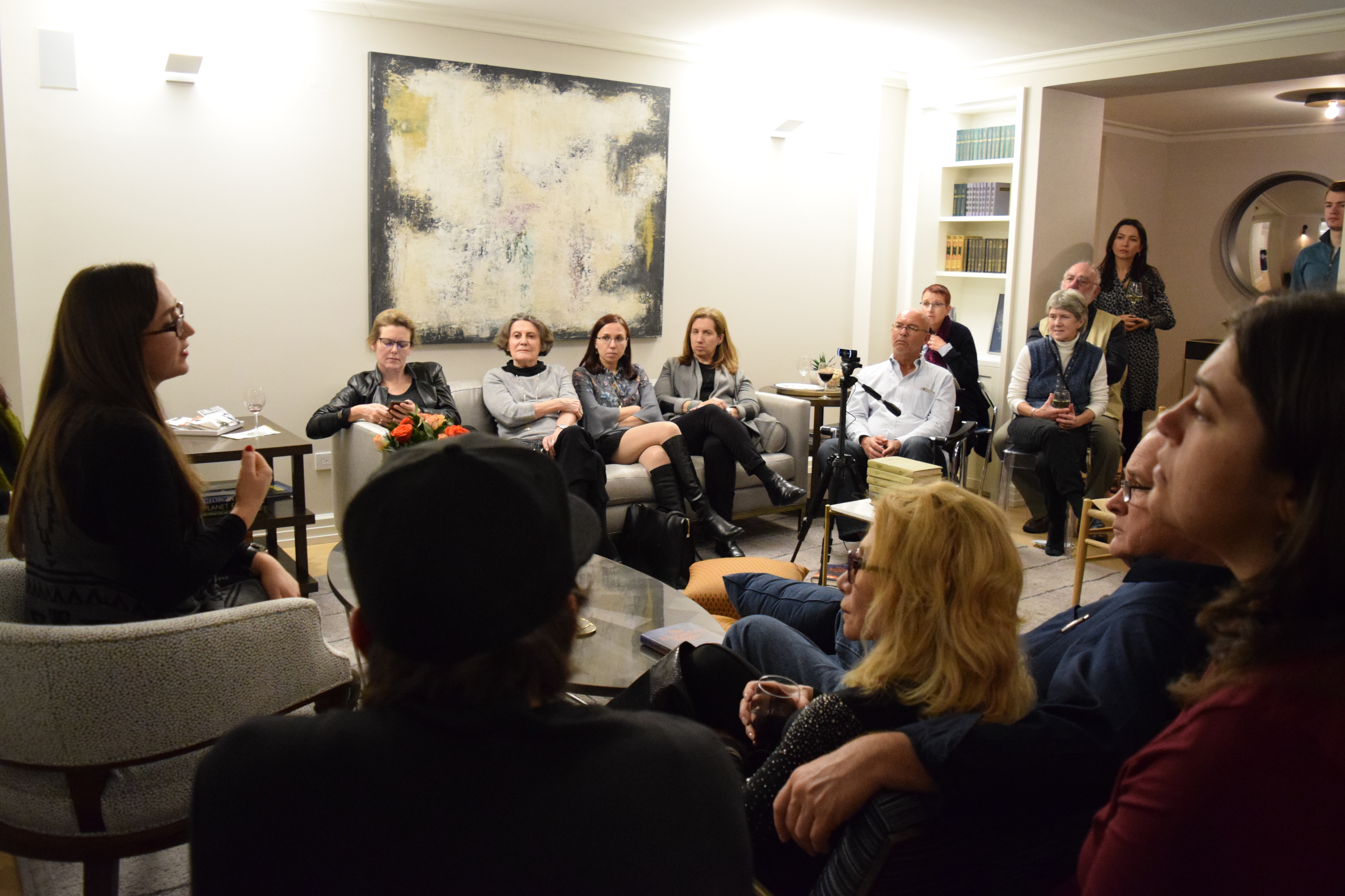 Friends and patrons of Razom gathered in a private residence on the Upper East Side in Manhattan, where they mingled over drinks and delicious food before settling down for a discussion between Dr. Shore and Olena Lennon, Adjunct Professor of History at University of New Haven.