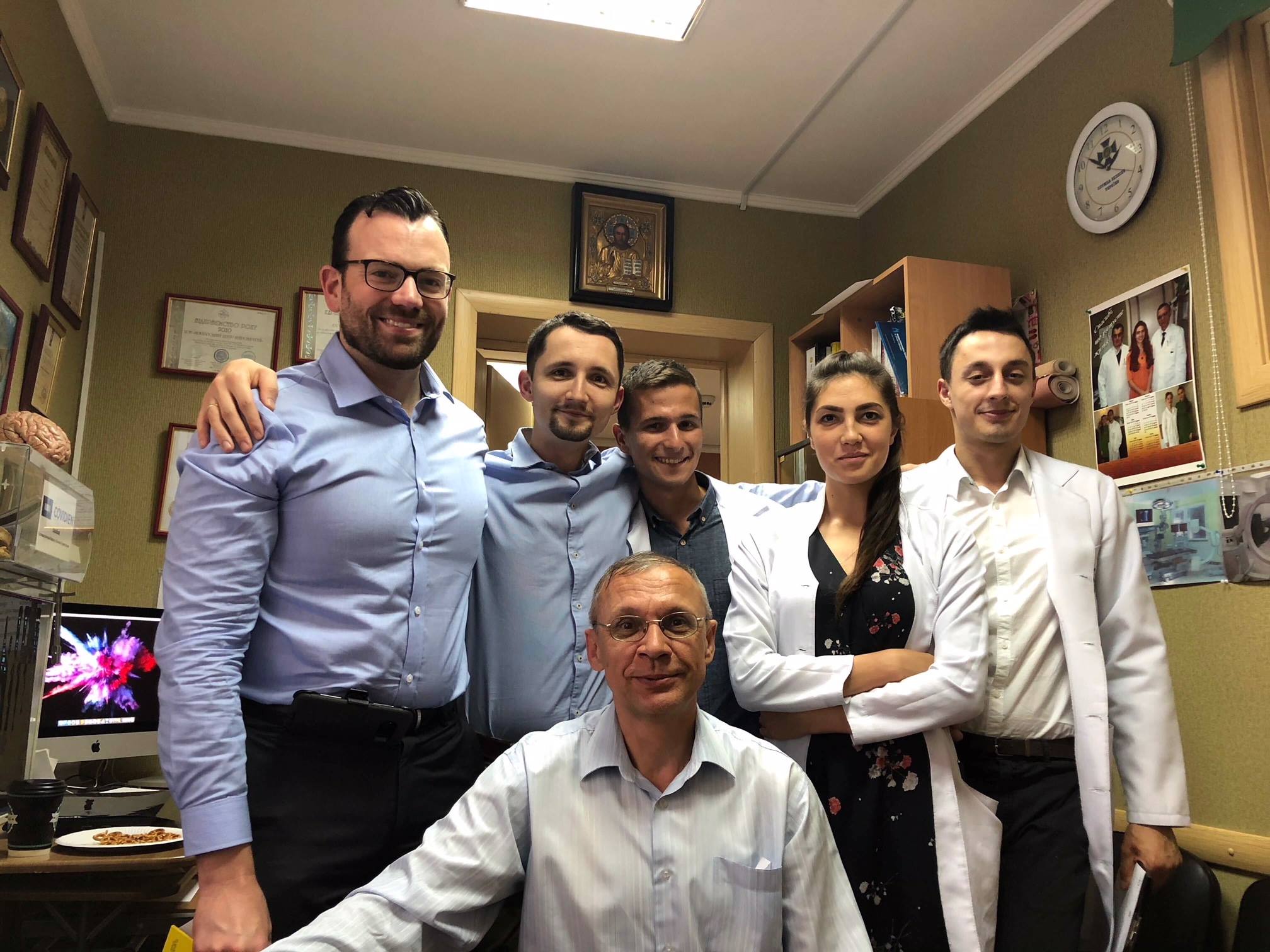 On the last trip of 2018, three American doctors – Luke Tomycz (neurosurgeon from Rutgers University Hospital), Jonathan Forbes (neurosurgeon from Univ of Cincinnati), and Jefferson Miley (neurointerventional specialist from Austin TX) – worked with partners at Romodanov Institute, the International Neurosurgery Center (Kurilets clinic), Lviv Trauma Hospital (Andrij Netliuk, Victor Salo), Lviv Children’s Hospital (Igor Homeniuk), and Lutsk Regional Children’s Hospital (Mykhailo Lovga). The team consulted on approximately 90 patients and helped perform 8 craniotomies, 2 spinal surgeries, and 3 aneurysm coilings. At Romadanov, the American doctors observed a few surgeries and made contacts with Mikola Huk (endonasal surgeon) and Mikhailo Kostiuk (cerebrovasc surgeon).