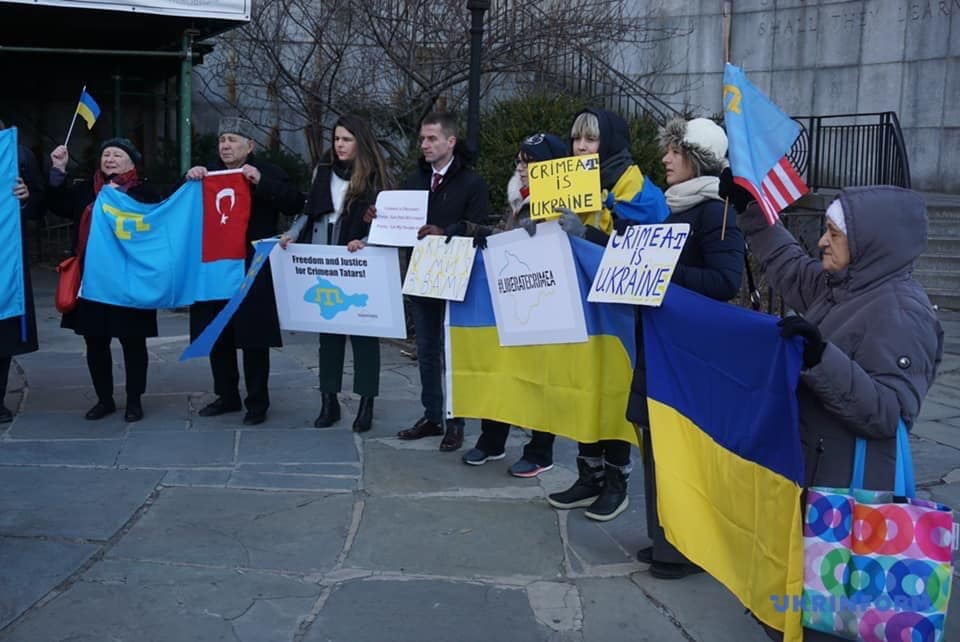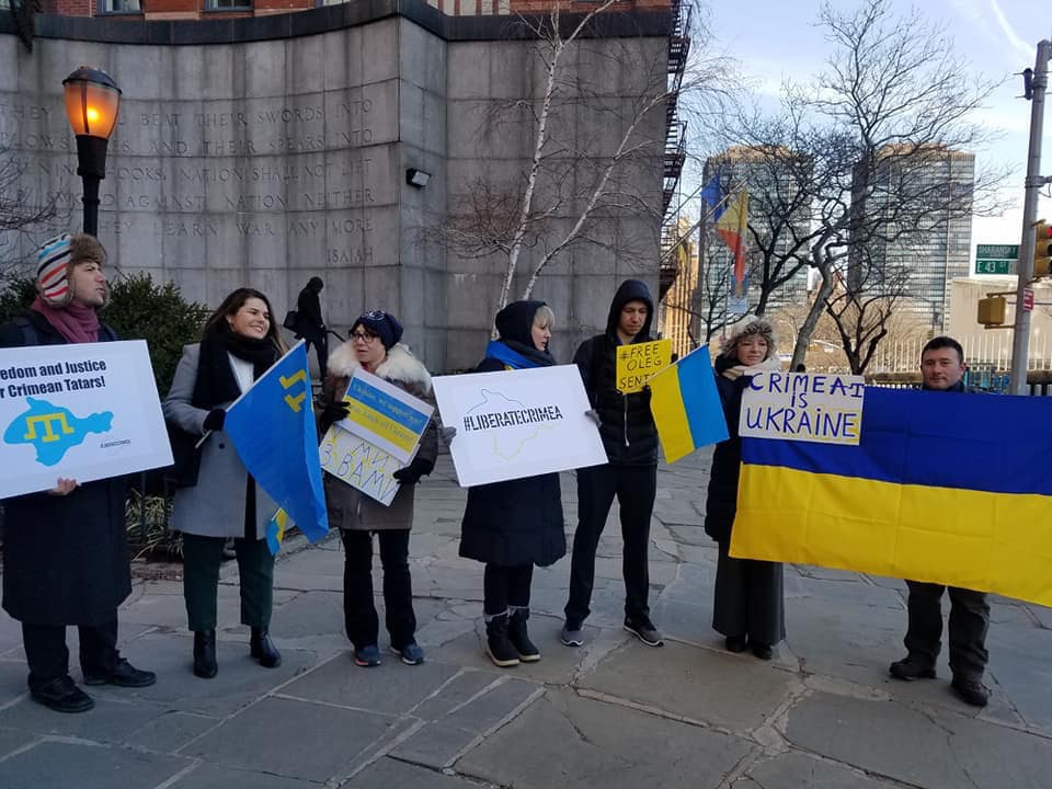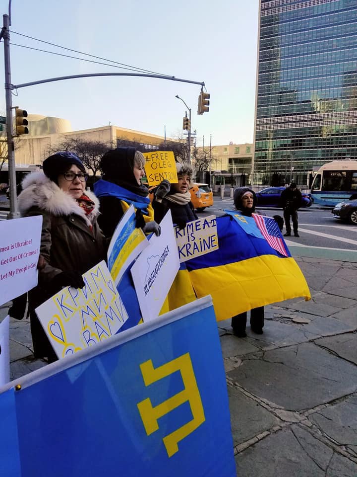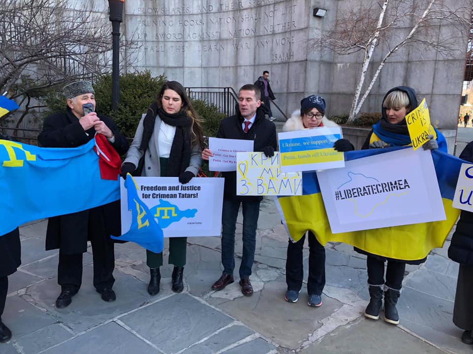 We thank our dedicated volunteer Maryna Prykhodko for her time and efforts put into organizing the demonstration. Today is a very symbolic day. And we came out to stand for what is right. Thank you to everyone who showed up this morning, on February 26 2019, at the UN to demonstrate alongside our Crimean Tatar friends against the illegal occupation of Crimea. Ukrainians and Crimean Tatars have since the tragic events in 2014 banded together against a common aggressor – the Russian Federation. Crimean Tatars, like Ukrainians, continue to be persecuted and repressed in Crimea for expressing their identity and their support for Ukraine. Crimean Tatars are often kidnapped and tortured, wrongfully accused and sentenced to prison under false charges, and have their human rights regularly restricted. For these reasons and more, Ukrainian and Crimean Tatar communities in New York work together towards a common goal – a free Ukraine – and stand together during protests and demonstrations calling for justice.