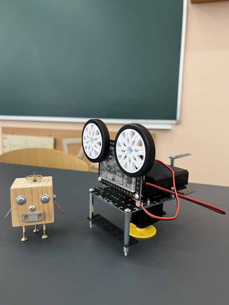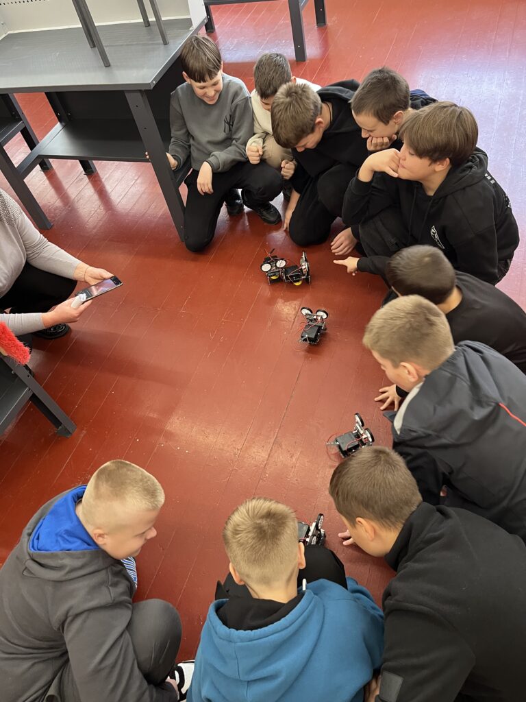 The first thing you notice during one of the regular STEM class periods is a group of boys, huddled in pairs around robot dogs – small, bright creatures made of plastic. Each duo’s face is scrunched up in concentration as they race to beat their classmates and be the first ones to complete the small robot. Thirteen-year-old Zakhar assembled it in just two 30-minute class periods. “It’s a robot dog,” he explains, carefully placing it on the table. “It can spin around and jump like a little projectile.”