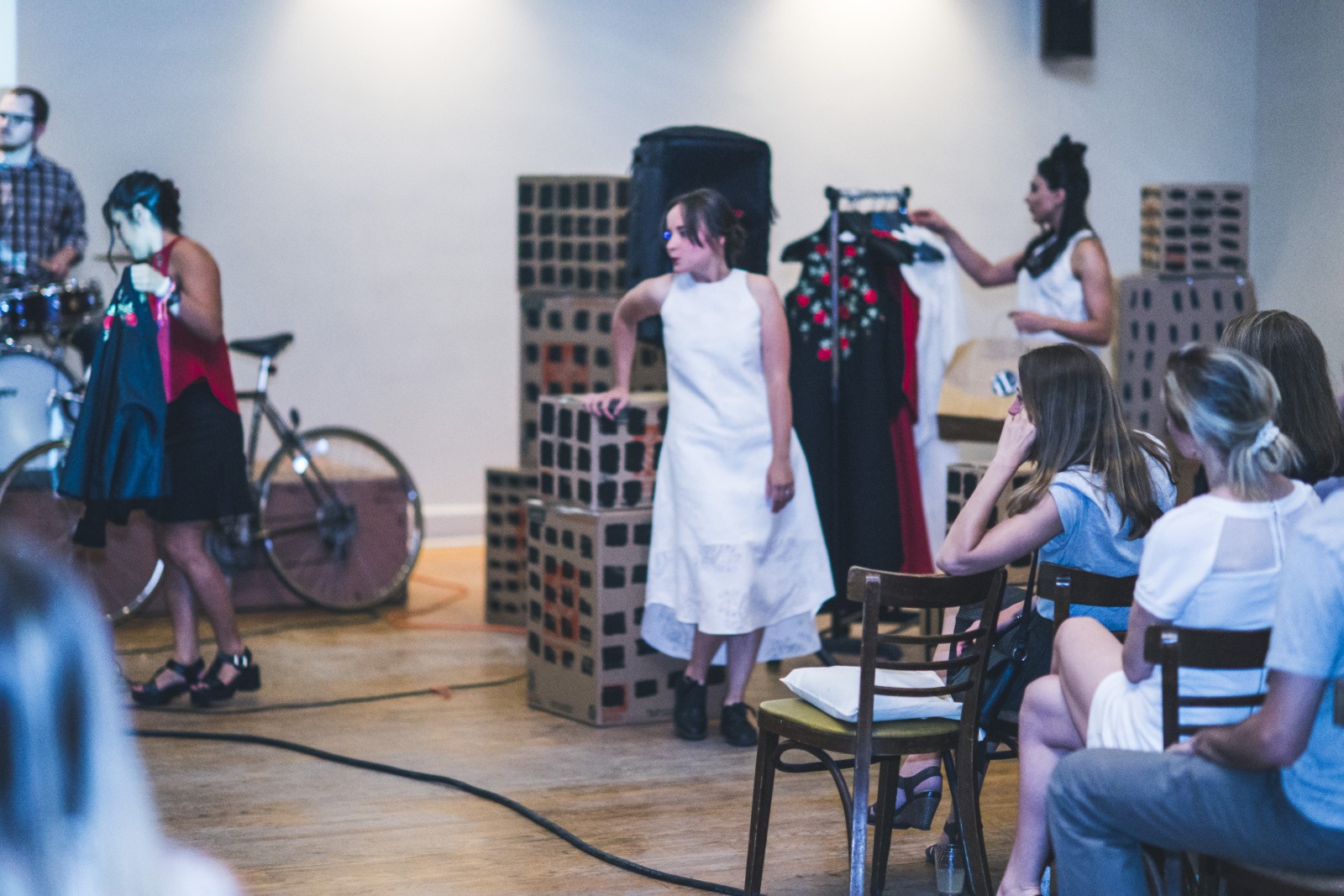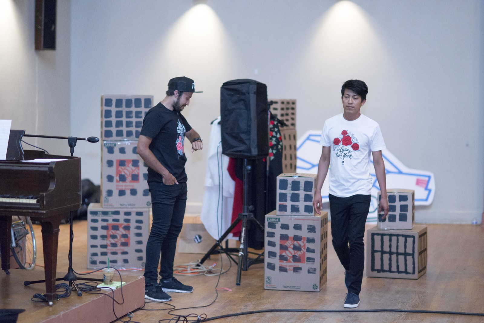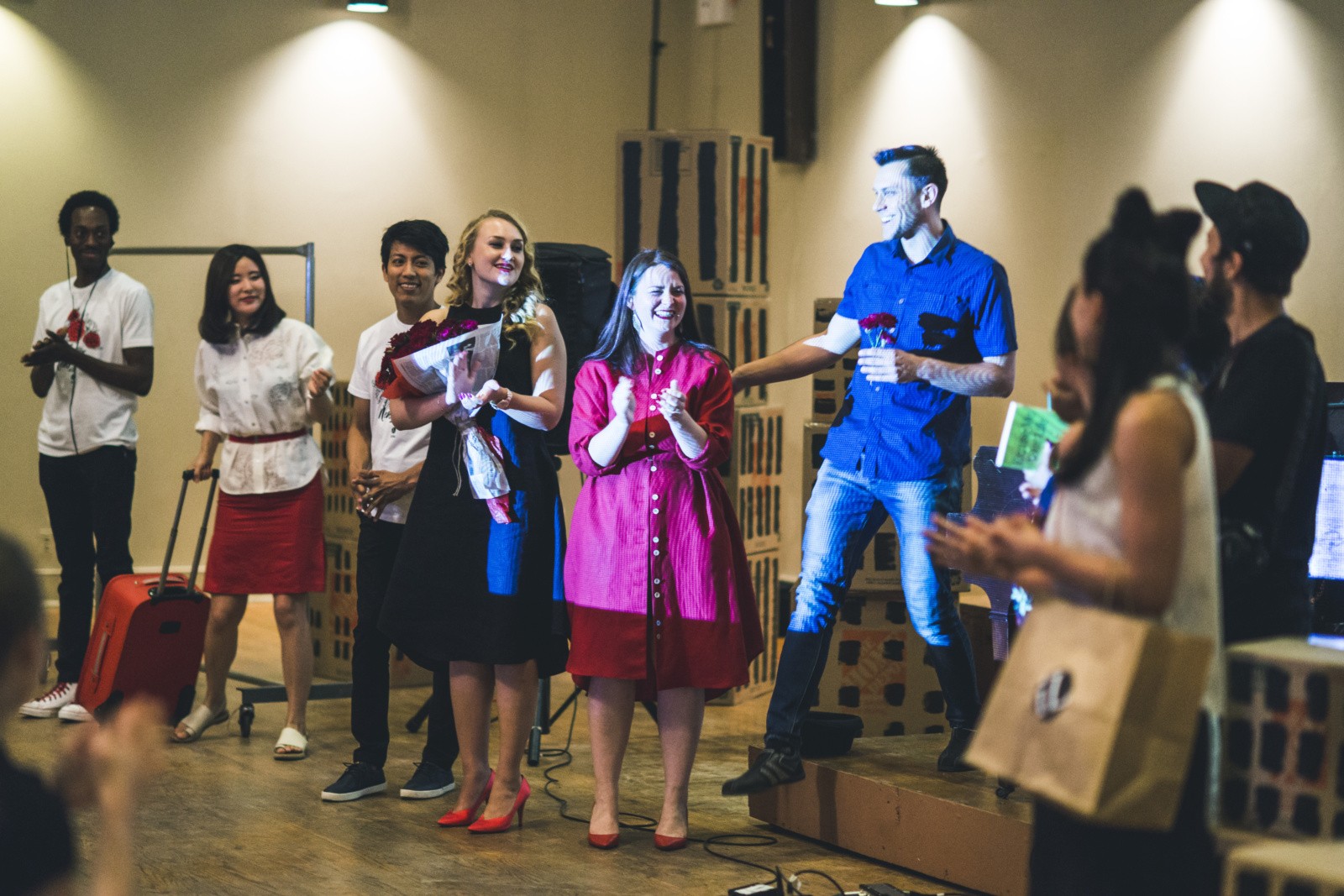 Many of these pieces had roots in traditional Ukrainian culture in some way. Waldemart Klyuzko’s light installations illuminated kaleidoscope patterns of traditional Ukrainian embroidery. Ira Lysa’s elegant dresses included vyshyvanka-inspired red roses. Sashko Danylenko’s cartoon characters looked to be straight out of Ukrainian fairy tale stories. We are very thankful to be able to call these artists our friends, looking forward to our next collaboration.