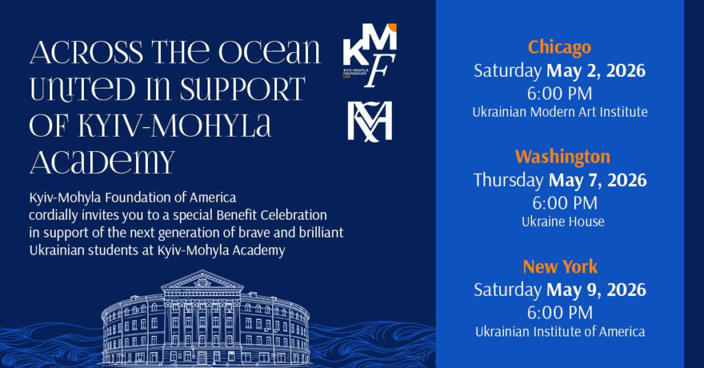 The Kyiv-Mohyla Foundation of America invites you to a special benefit celebration in support of the next generation of Ukrainian students at Kyiv-Mohyla Academy. Taking place across three cities, this event brings communities together in a shared commitment to education, resilience, and Ukraine’s future. Join an evening of connection and purpose as we stand united in supporting young scholars shaping the country’s tomorrow.