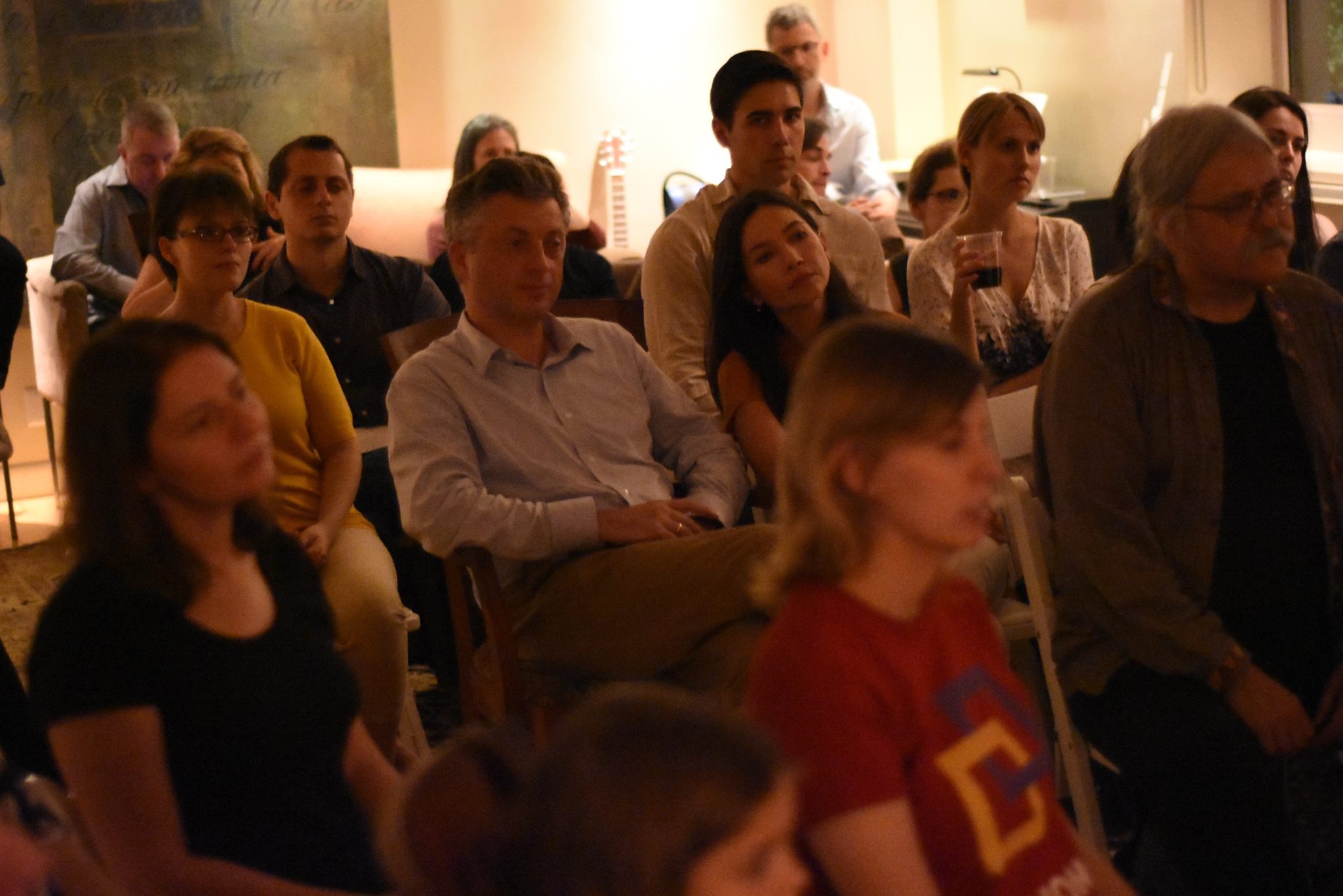 It was tremendous to be able to hear songs (and stories) that aren’t heard often (enough) and which are riveting – words written in the 1970’s in Ukraine and relevant to the US today. So many of NYC Ukrainians and their friends couldn’t let themselves miss the event, and came to hear the acoustic performance of the “narodnyi” (honored/people’s) artist of Ukraine. Upbeat or melancholic, full of deep thoughts and feelings, the words (and the music) took the audience to a different reality, where time didn’t exist.