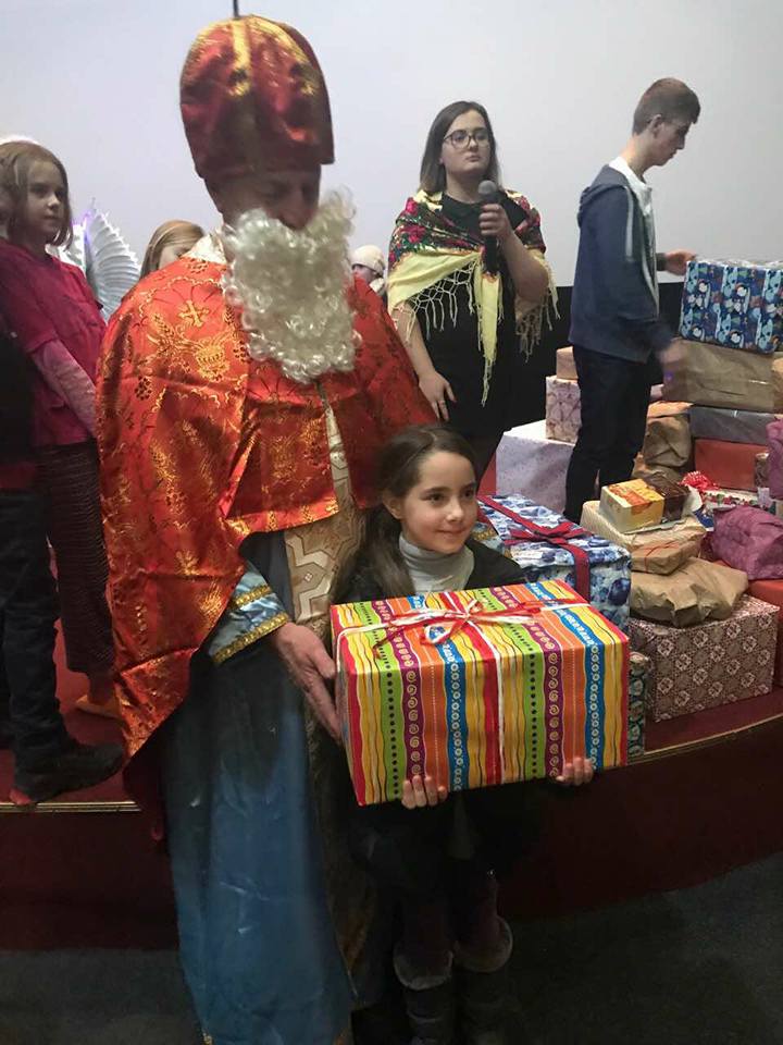 The project team devoted their precious time and effort to collect presents for kids during the last holiday season in late 2017. Many people from different cities and towns in the US responded to the call for Toy Drive donations. Razom thanks everyone, who donated toys, clothes and school appliances. This support is simply immeasurable! The project was pushed a few weeks earlier than in the previous year, with the goal of creating a special celebration for kids on St. Mykolai’s Day. Everything was packed and sent to Ukraine in early December. Thus, children in the Lviv foster-school #2 received their dream presents on time. That day the children watched a nice performance, and received their individual gifts from Mykolai and his helpers personally.